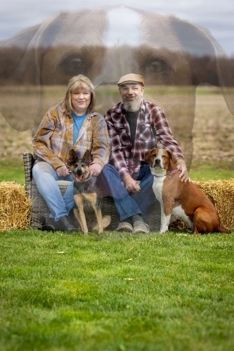 $300 - These are done over four sessions scheduled as close as possible to 3, 6, 9, and 12 months. We understand that more time than may be needed and that is no problem, we love animals and are happy to work with them to get the shot! You will have three to five pictures from each session. At the end of the year, pic your four favorite shots and I will combine them into one picture.